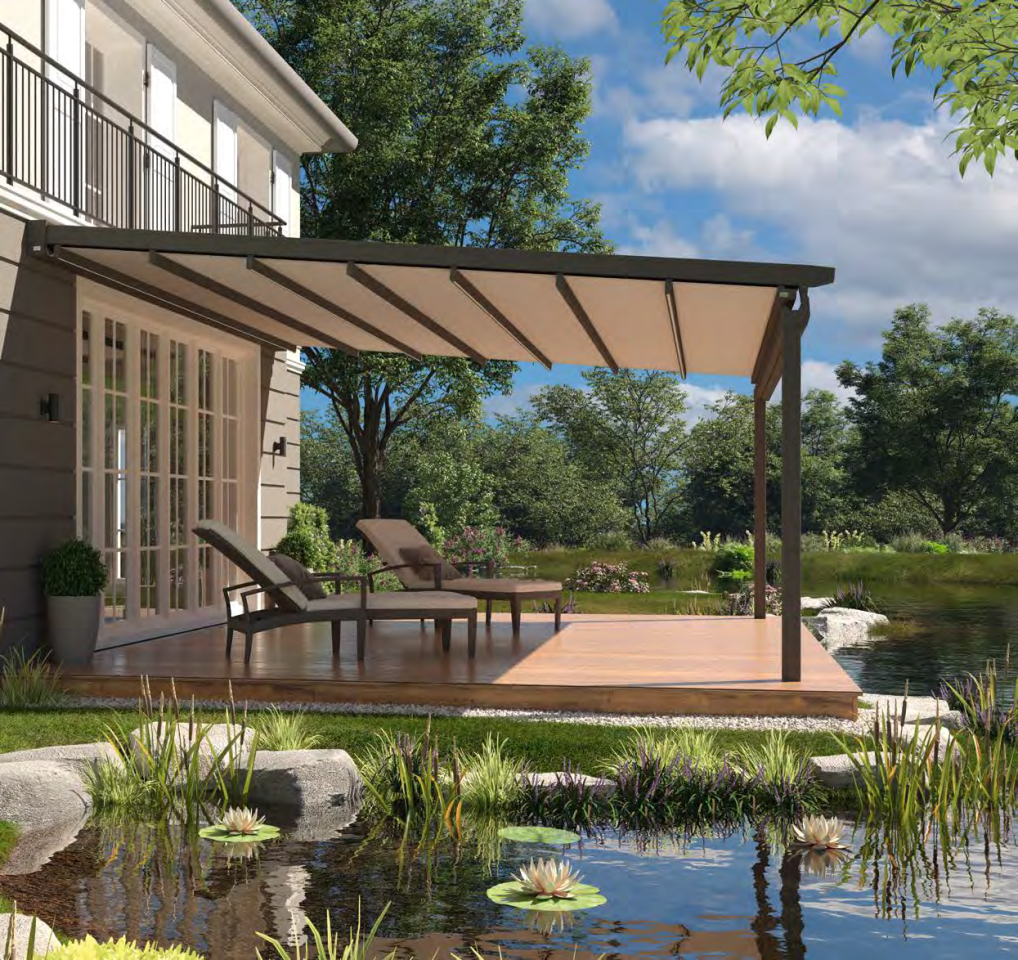 Beide Materialien bieten einen wasserdichten Wetterschutz, höchsten UV-Schutz und eine hohe Wärmereflexion für ein angenehmes Klima.
