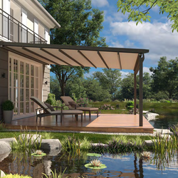 Die Wetterschutzpergola Positano bietet Komfort und Ausstattung für höchste Ansprüche. Mit einer regendichten Bespannung schafft diese Markise großzügige Terrassenräume von bis zu 42 m2 mit variablem Wetterschutz. Als perfekte Ergänzung bietet sich die Zip-Senkrechtmarkise Micro 2020 mit Screen-Bespannung als passgenauer Sicht- und Sonnenschutz für die Frontseite an.