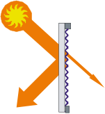 - An dieser Reflektionsschicht wird die „kalte“ Wärmeeinstrahlung im Bereich von 330 nm - 2500 nm reflektiert ohne in Wärme (10000 nm - 50000nm) umgewandelt zu werden!