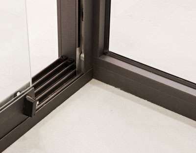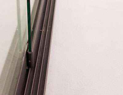 Die einzelnen Elemente laufen oben über ein hochwertiges Rollensystem und werden unten durch Gleiter zusätzlich geführt. Das erste Glaselement öffnet sich als Tür, wobei der Schnappverschluss durch einen schlanken Seilzug bedient wird.