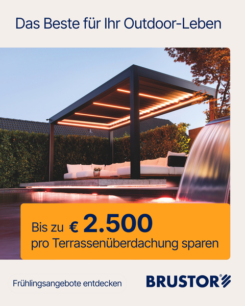 Eine Brustor Terrassenüberdachung - das ist purer Genuss deines Außenbereichs. Das ganze Jahr über. Von der Vorsaison bis zur Nachsaison. Angebaut an dein Haus oder freistehend in deinem Garten: ein zusätzliches Plätzchen, an dem du dich wohlfühlst. Geschützt vor Sonne, Regen, Wind oder Schmutz.