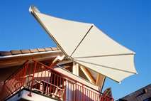 Offene Gelenkarmmarkisen werden vor allem für Bereiche verwendet, bei denen sich die geschlossene Markise in einem geschützten Bereich befindet, z.B. Dachüberstand. Das eingefahrene Tuch und die Technik (inklusive Gelenkarme) liegen offen und sind damit den Witterungsverhältnissen relativ ungeschützt ausgesetzt. Als Basisschutz ist optional ein Regendach erhältlich. Die hochwertigen Aluminium- und Edelstahlbauteile sind deshalb, wie bei allen unseren Markisen, dauerhaft witterungsbeständig. Der Volant ist bei der offenen Gelenkarmmarkise der einzige Blickschutz auf Technik und Arme, diese sind von unten immer sichtbar. Offene Gelenkarmmarkisen finden ihren klassischen Einsatz in geschützten Bereichen auf Balkon und Terrasse.