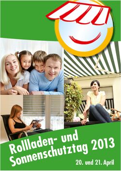 Beim Rollladen- und Sonnenschutztag am 20. April 2013 öffnen die Fachbetriebe des Rollladen- und Sonnenschutztechniker-Handwerks ihre Türen, um über die vielfältigen Anwendungsmöglichkeiten ihrer Produkte, beispielsweise in Sachen Energieeinsparung oder Einbruchschutz, zu informieren.