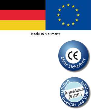 ROMA-Garagentore - geprüfte Sicherheit. Durch die CE-Kennzeichnung und die mitgelieferten Dokumentationen können sich Torbetreiber, Planer und Fachhändler sicher sein, dass die Tore den Bestimmungen der Torproduktnorm voll entsprechen.