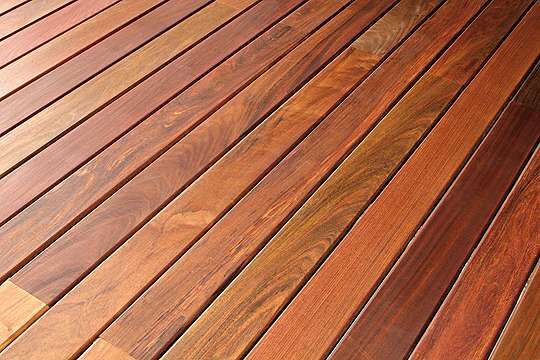 Holzfußboden-Modul in den Maßen 62x200 cm aus Cumarùholz, besteht aus 10x2 cm geölten Dauben.