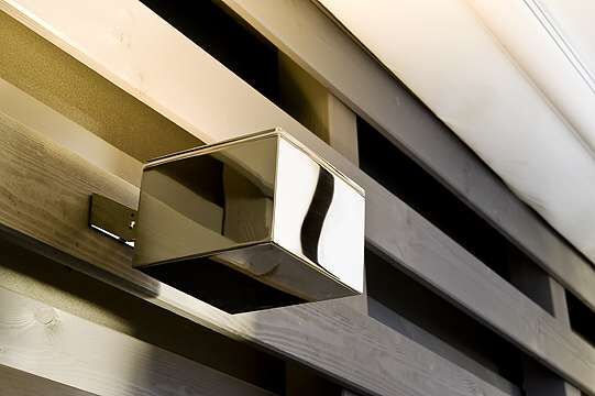 Leuchtkörper aus satiniertem oder mattiertem Inox Stahl, einem Glasdiffusor aus satiniertem und temperiertem Glas und einer in 4 verschiedenen Positionen regulierbaren Halterung.